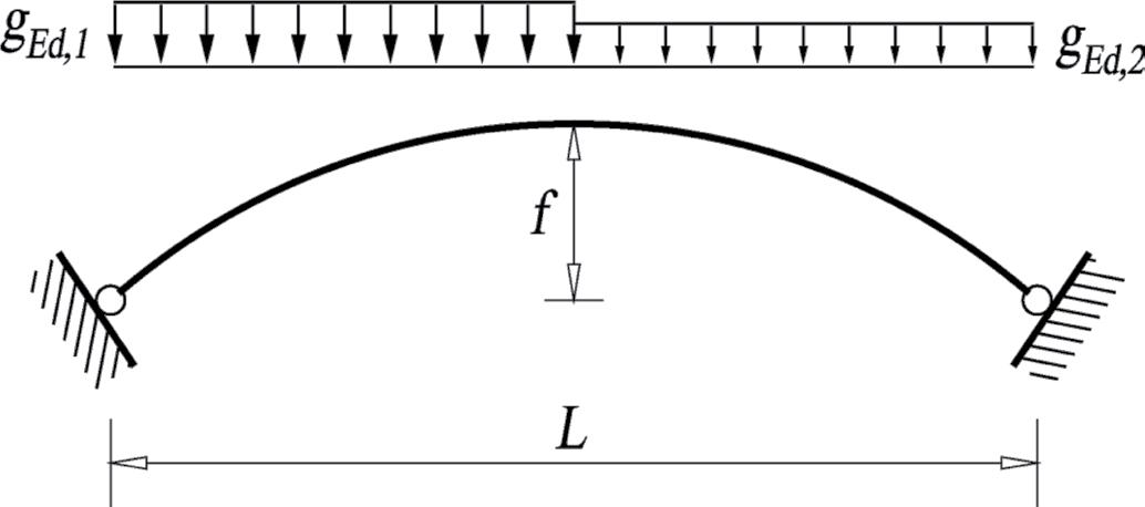 Dla parabolicznego łuku pokazanego na rys. 3-8.30 wyznaczyć wytężenie metodą AIM i porównać z klasyczną metodą wyboczeniową.