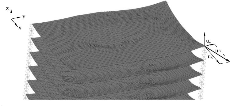 - Model przestrzenny należy obciążyć oddziaływaniami zewnętrznymi oraz równoważnymi siłami od imperfekcji przechyłowych , a także geometrycznymi wymuszeniami łukowymi.