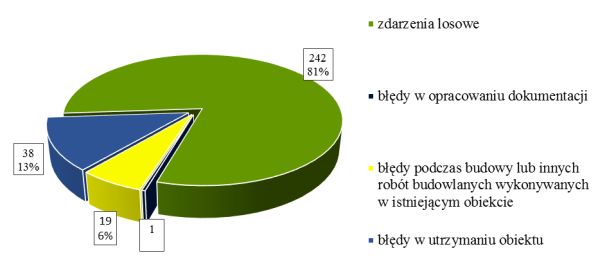 Na rys. 1 pokazano przyczyny katastrof w 2015 roku, w którym zanotowano tylko 19 katastrof (6%) podczas wznoszenia obiektu.