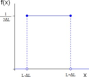 Rozkład ten pokazano na rys. 1. Tak przyjęty rozkład oznacza, że w przedziale możliwych wartości długości belki $L \pm \Delta L$, gdzie $\Delta L$ jest dopuszczalną tolerancją może przyjąć każdą wartość z tym samym prawdopodobieństwem