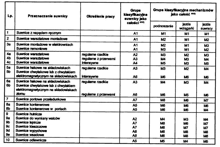 Grupę natężenia pracy suwnicy określa producent dźwignicy, a w przypadku braku takich danych można ją szacunkowo przyjąć z tab.3