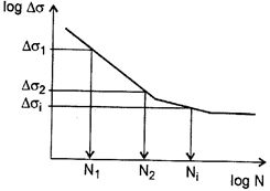 $$\begin{equation} \text { 3) dla } N > 10^8 \text { jest : } \Delta \sigma_L =\Delta \sigma_D \cdot (5/100)^{1/7}=0,549 \Delta \sigma_D=0,549 \cdot 0,737 \Delta \sigma _c=0,405 \Delta \sigma_c \end{equation}$$