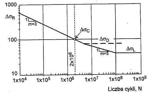 $$\begin{equation} \Delta\sigma_R^m \cdot N_R=\Delta\sigma_c^m \cdot 2 \cdot 10^6 \text { gdy } 1 \cdot 10^4 \le N \le 5 \cdot 10^6 \end{equation}$$