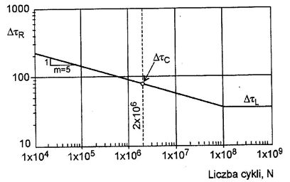 gdzie wytrzymałość zmęczeniowa $\Delta \sigma_R$=$\Delta \sigma_c$ oraz $\Delta\tau_R$=$\Delta\tau_c$