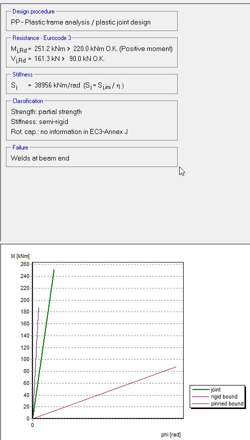 sztywność początkowa $S_{j,ini}^{csJ}= 76440 /, kNm \approx S_{j,ini}^{CoP}=77914 \, kNm/rad $ (różnica 0,2%).