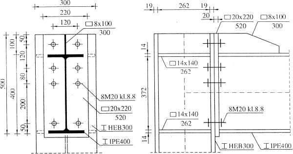 Nośności połączeń (Momententragfähigkeit) podano na innych kartach tych tablic i nie podajemy ich tutaj ze względu na bezprzedmiotowość dla rozpatrywanego przypadku. Z wybranej karty katalogu można odczytać, że dla połączenia belek HEA800 (nr 538) należy zastosować blachy czołowe o grubości 30 mm.