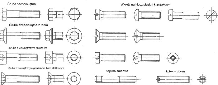 Rys. 4 Rodzaje śrub [9] rozdz.7, rys.1