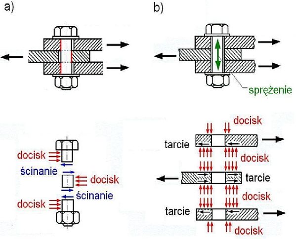 - część gwintowana śrub pasowanych nie powinna się znajdować w płaszczyźnie ścinania.