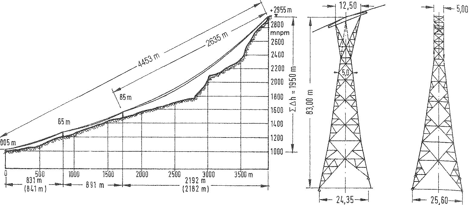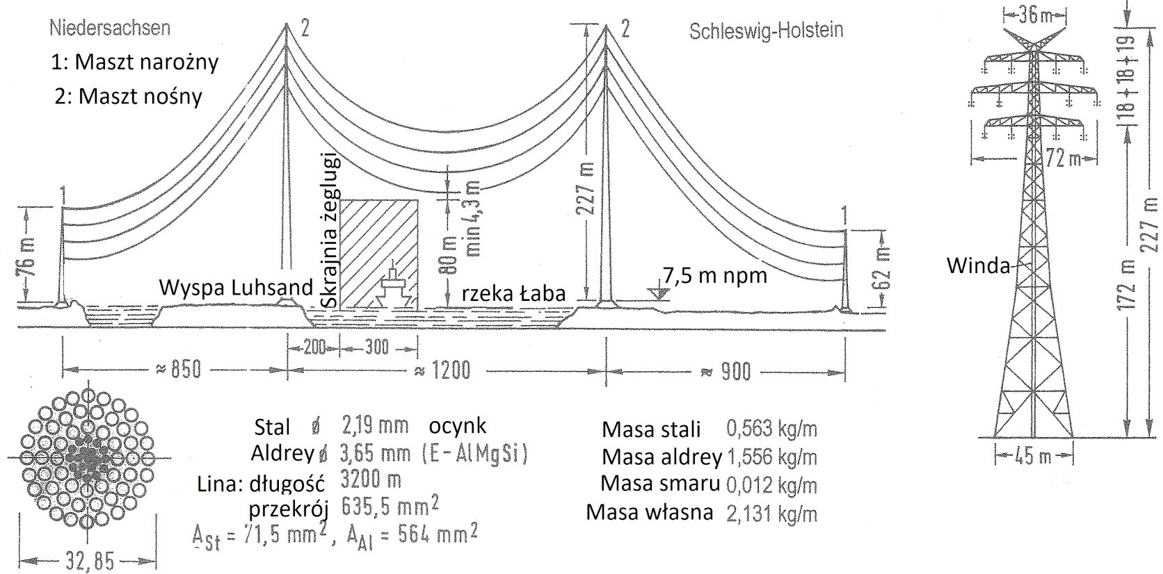 Na rys. 1 pokazano przykład realizacji lin nośnych górskiej kolejki linowej, a na rys.2 przykład linii elektroenergetycznej ponad rzeką Łabą.
