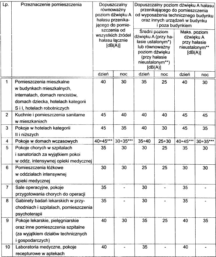 Tab.1Dopuszczalny poziom dzwieku w pomieszczeniach PN-87/B-02151/02