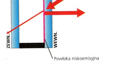 Na rys.5 pokazano szybę wysokowydajną, czyli z dodatkową powłoką niskoemisyjną. Stosuje się powłoki miękkie (nakładane magnetronowo) lub twarde ( nakładane na linii produkcji szkła float).