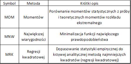 Oszacowanie parametrów rozkładu Gumbela metodą momentów MOM