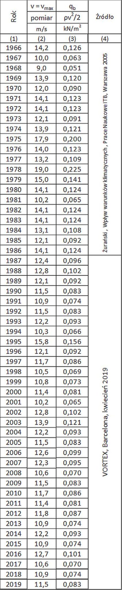 Z porównania teoretycznie uzasadnionej szczytowego ciśnienia prędkości wiatru